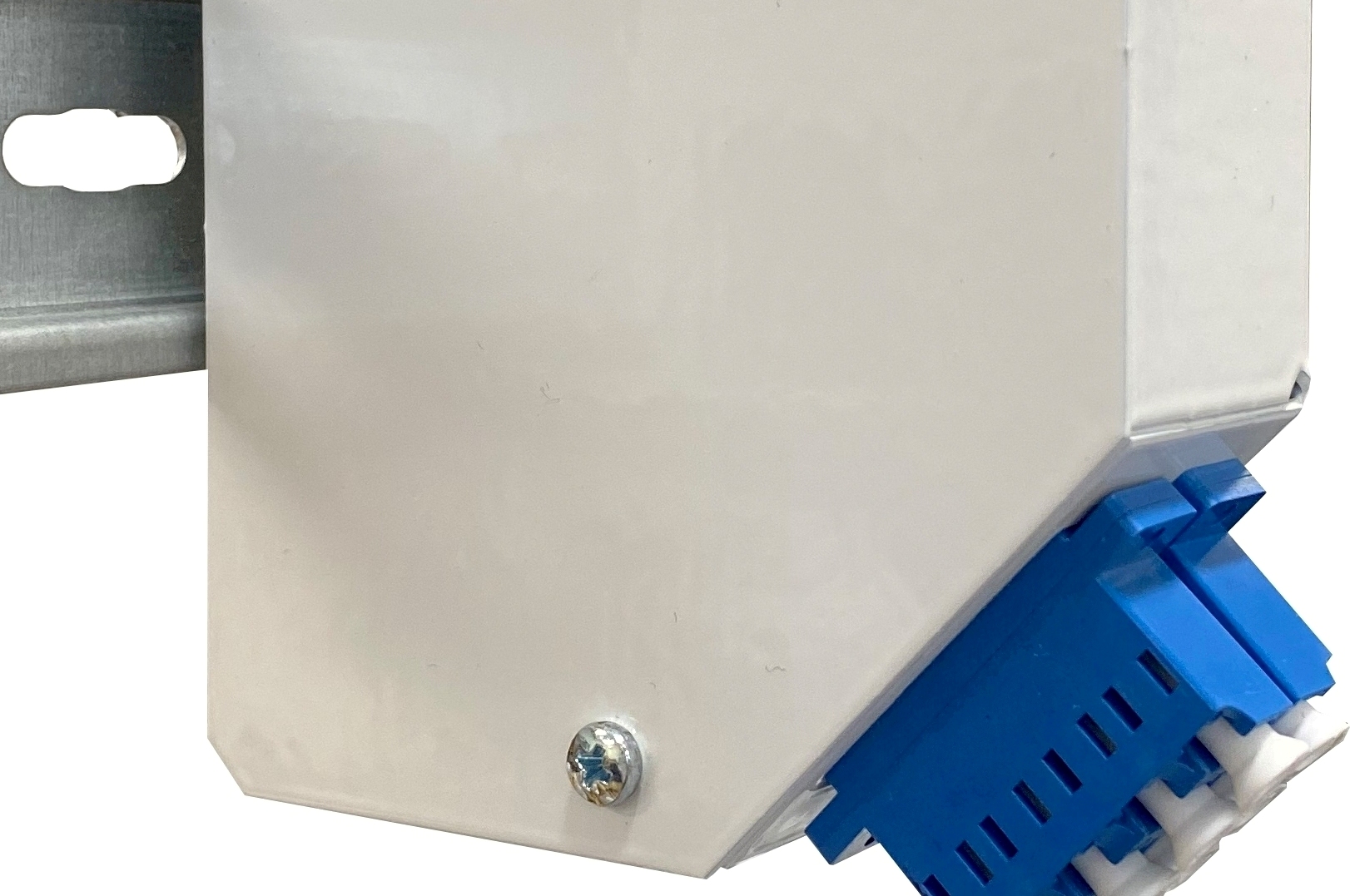 Fiberuttag med transparent lock, robust botten och sidor i 1mm stålplåt i vit RAL9016. För upp till 8 fiber. |
