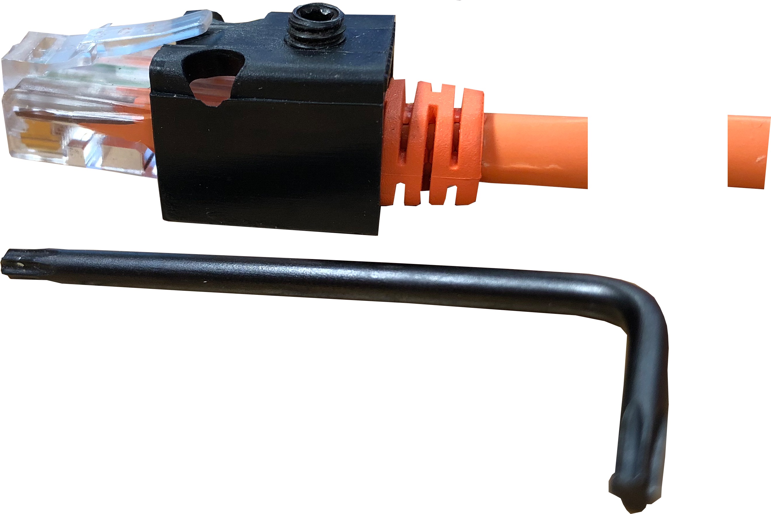 Patchlås - den enkla lösningen för att säkerställa att kablaget inte lämnar sitt jack. Kan eftermonteras på alla kablage, där böjskyddet är av samma storlek som kontakten. |