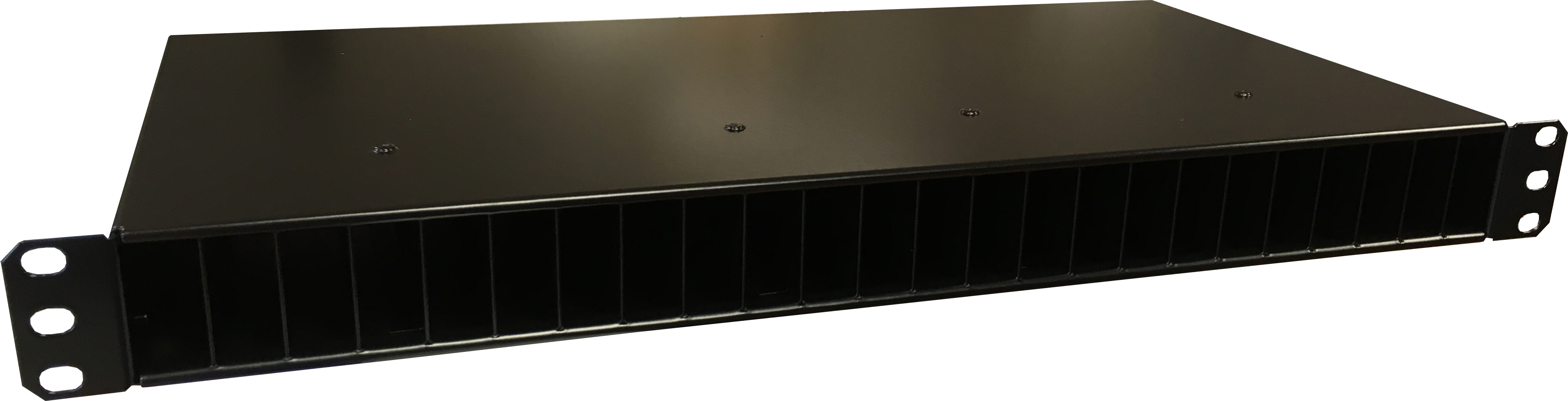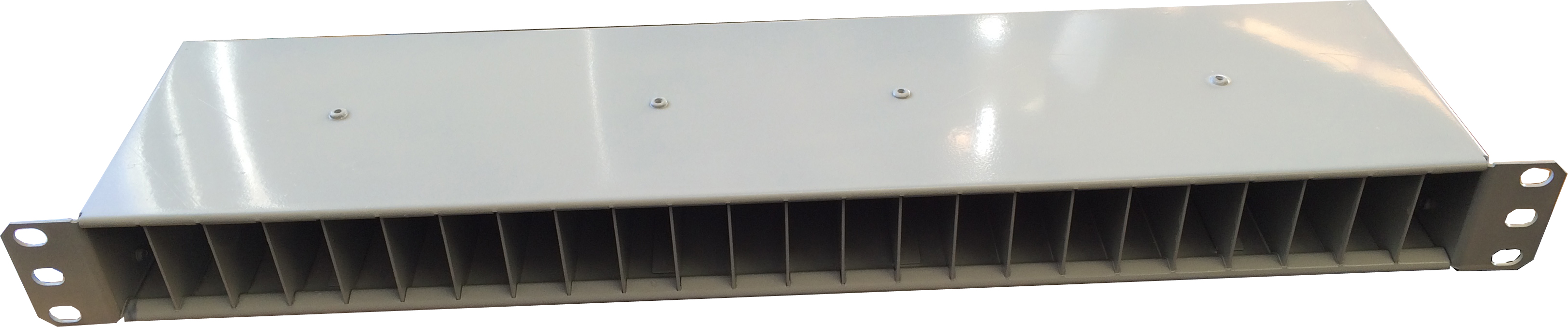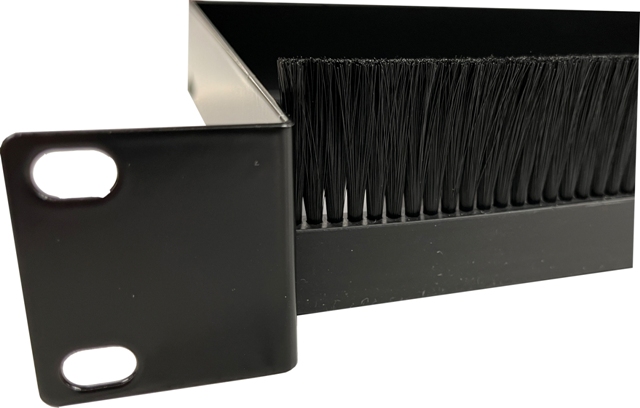 Kabelhylla med borstlist 1 HE, lackad i svart RAL9005. |